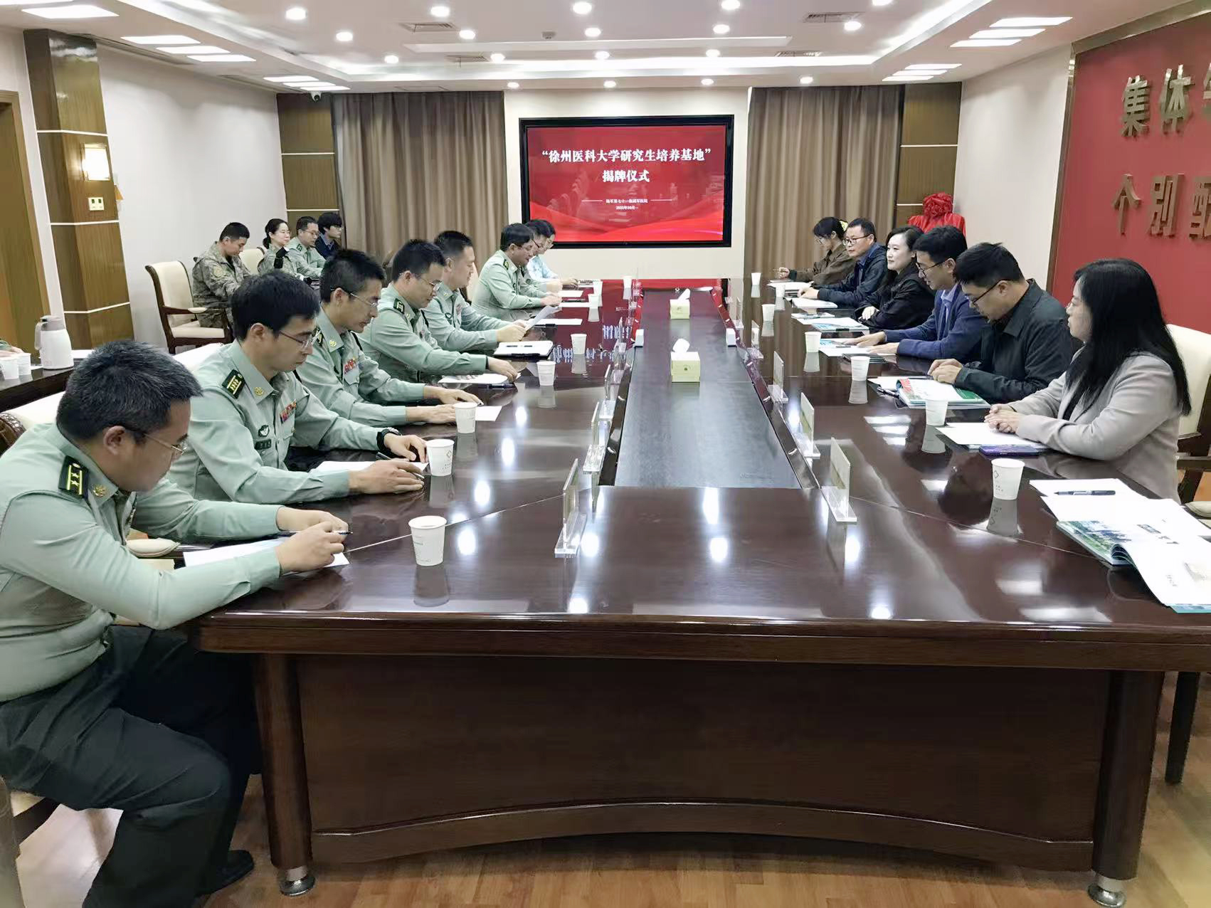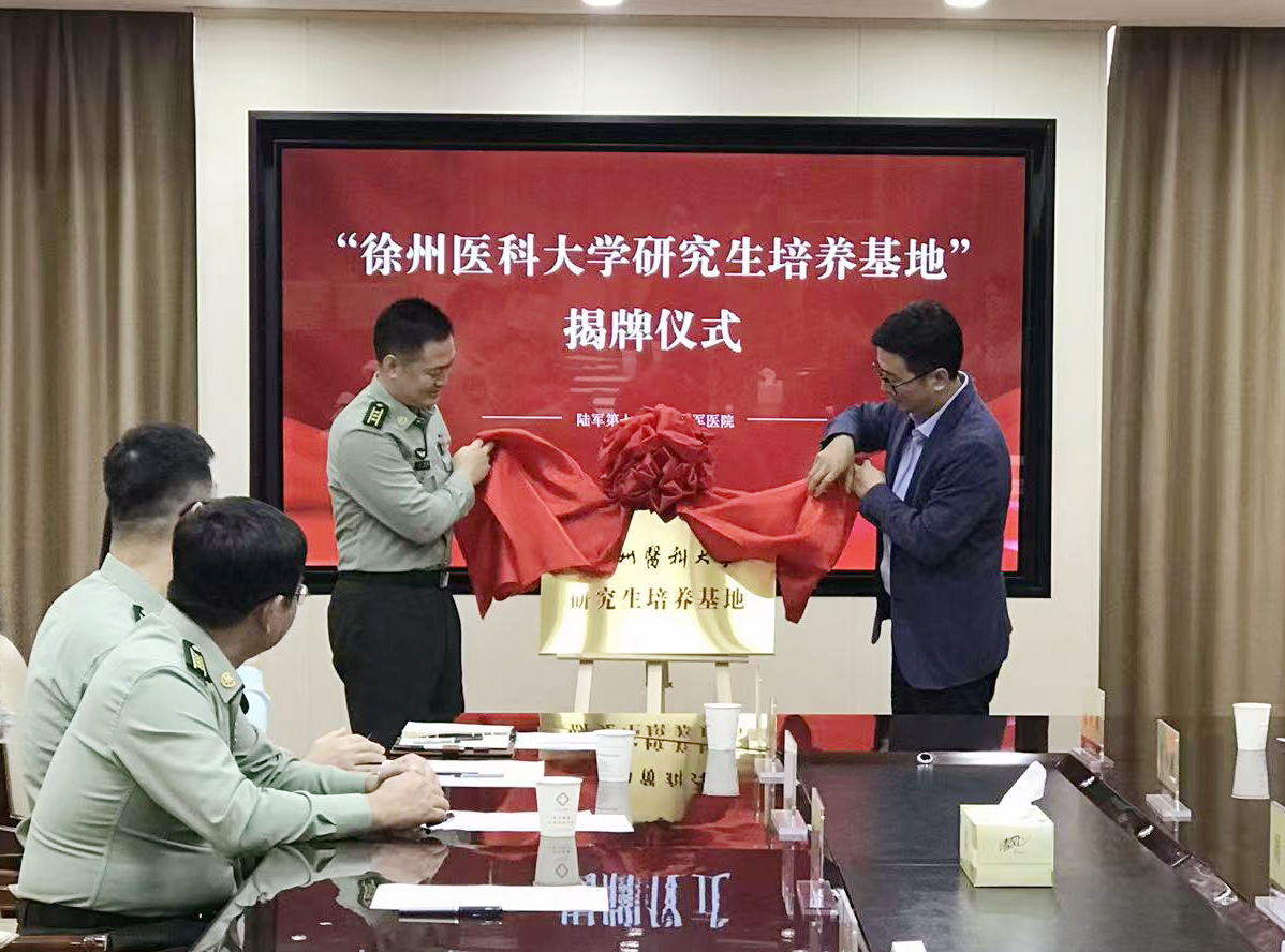 10月15日下午,“徐州医科大学—中国人民解放军陆军第七十一集团军医院研究生培养基地”签约揭牌仪式在陆军第七十一集团军医院举行。校研究生院院长张青、药学院院长周雪妍,陆军第七十一集团军医院院长张传祯、副院长丁慧,及双方单位代表共同出席。仪式由陆军第七十一集团军医院副院长丁慧主持。