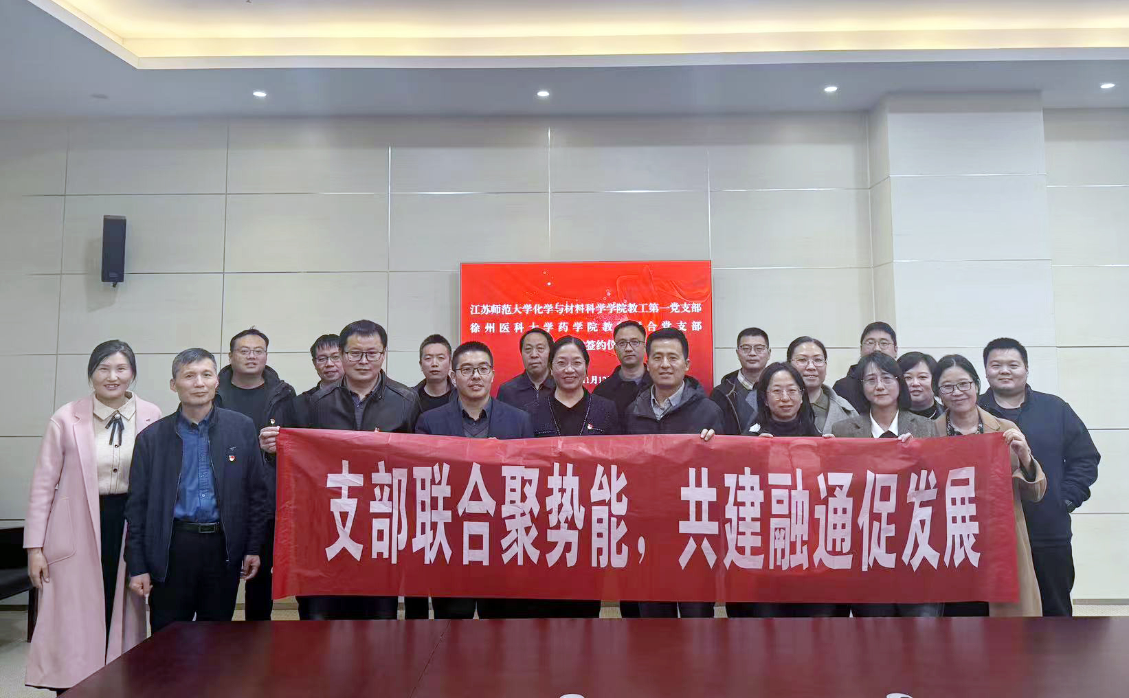 为深入学习贯彻习近平新时代中国特色社会主义思想,进一步加强基层党组织建设,促进争先创优、强基固本,深化校际党支部间交流与合作,实现资源共享与优势互补,共同提升党建工作质量与水平,11月12日下午,我院生物有机化学教师党支部联合药物化学教师党支部、药理学和生药学教师党支部、化学教师党支部与江苏师范大学化学与材料科学学院教工党支部举行结对共建活动暨签约仪式。活动由江苏师范大学化学与材料科学学院党委书记吴晨主持。
