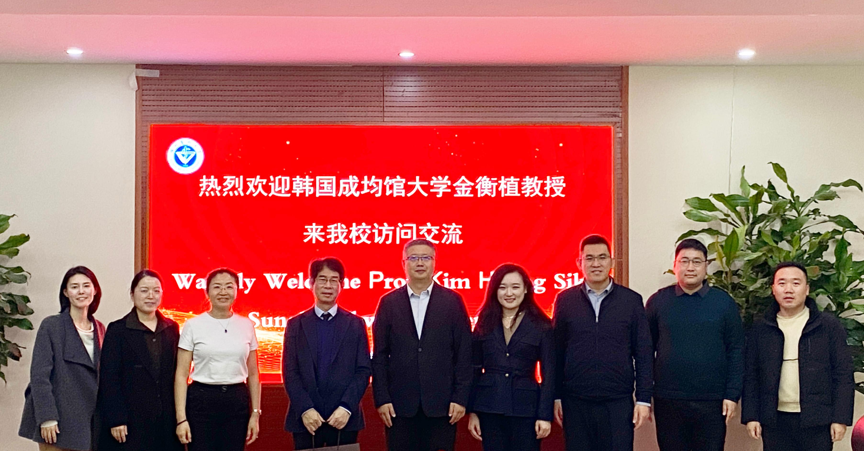 12月29日至30日,韩国药学会会长、韩国成均馆大学药学院院长Kim Hyung-Sik教授率团再次访问我校药学院,就深化合作进行会谈。校党委常委、副校长郭栋出席接待,国际合作与交流处、药学院相关领导和教师代表共同参加。会谈由药学院院长周雪妍主持。