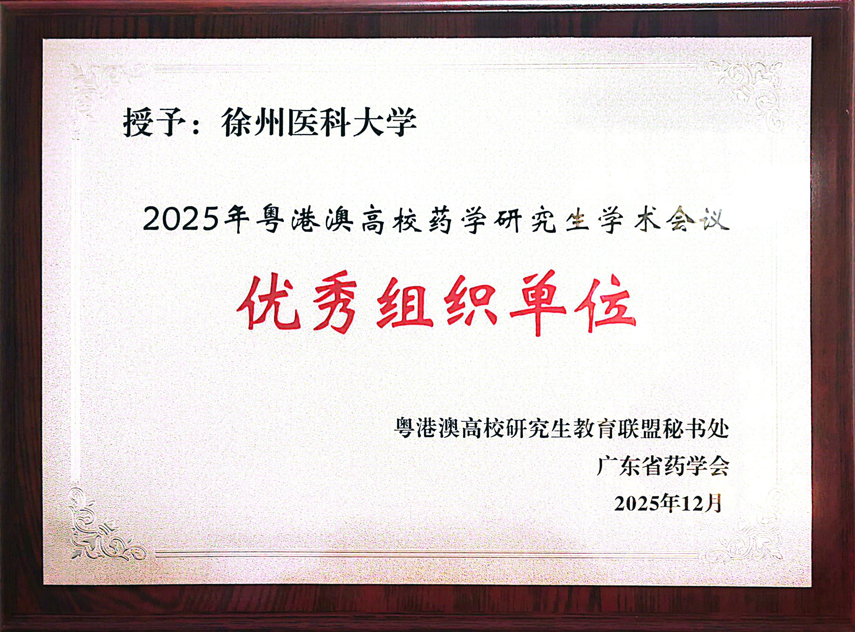 2025年12月25日至26日,2025年粤港澳高校药学研究生学术会议在广州举办。会议由全国药学专业学位研究生教育指导委员会、粤港澳高校研究生教育联盟、“一带一路”中医药发展联盟指导,广东药科大学和广东药学会联合主办,全国多所知名药学高校师生参与。经多轮严格评审,专家组评选出100篇论文在会议期间以壁报形式展示,并择优推荐40篇论文在分会场进行现场口头汇报评比。