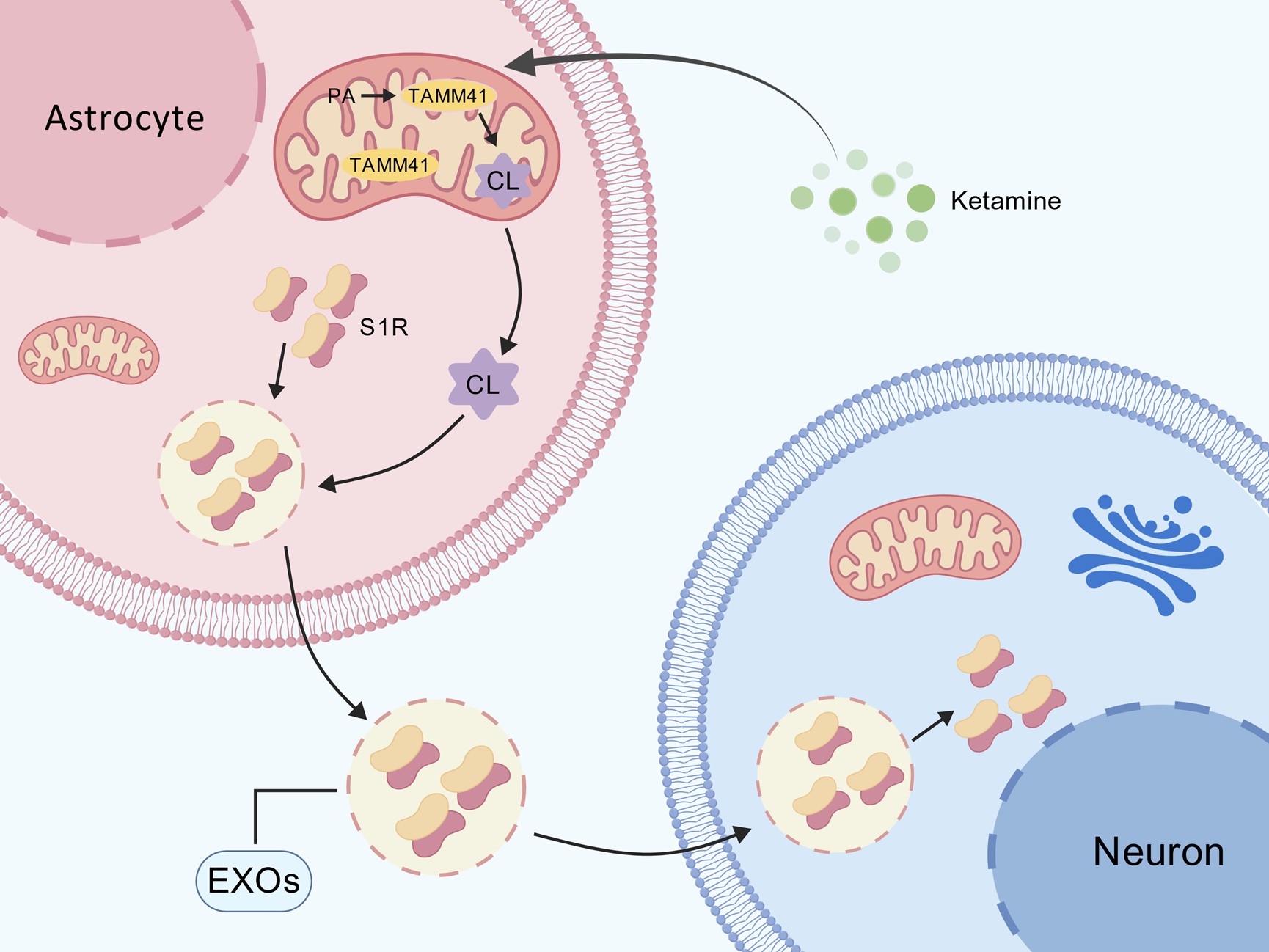 近日,我院王允教授课题组在知名国际期刊《Molecular Psychiatry》(中科院一区,精神病学领域TOP期刊)在线发表题为“Sustained antidepressant actions of ketamine involve TAMM41-mediated transfer of astrocytic sigma-1 receptor to neuron”的研究论文。该研究首次揭示了星形胶质细胞线粒体蛋白TAMM41通过外泌体途径介导sigma-1受体(S1R)跨细胞转运至神经元,从而介导氯胺酮持续抗抑郁作用的全新机制,并据此提出红细胞来源外泌体装载S1R mRNA的潜在抑郁症治疗策略。