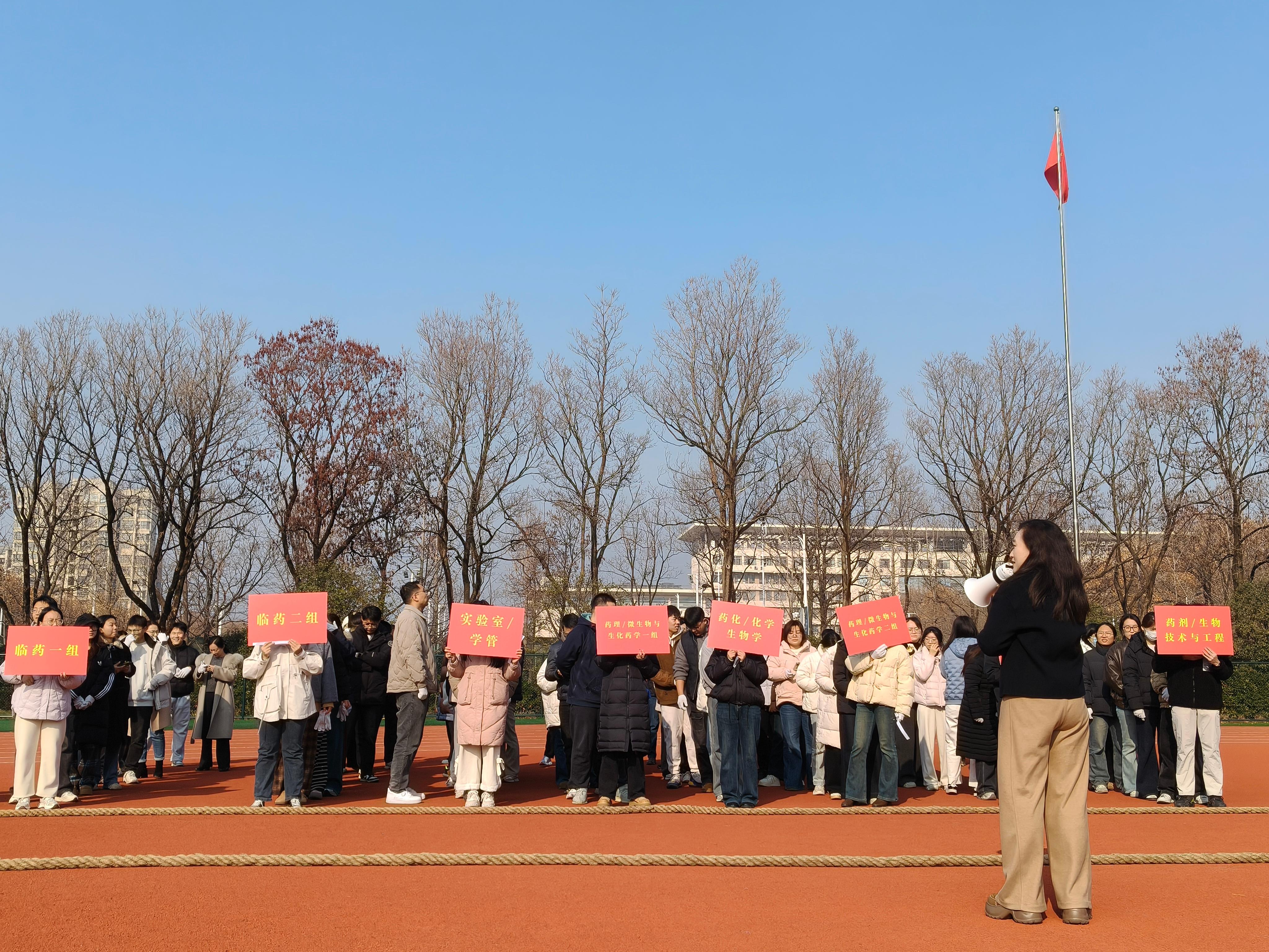 活动现场,参赛人员按学科分组进行拔河比赛。药学院院长周雪妍亲切致辞,她鼓舞师生在活动中释放压力、焕发活力,以绳为媒,凝聚学院同心。药学院党委副书记黄飞宣读了比赛规则,药学院分工会主席牟杰宣布比赛正式开始。