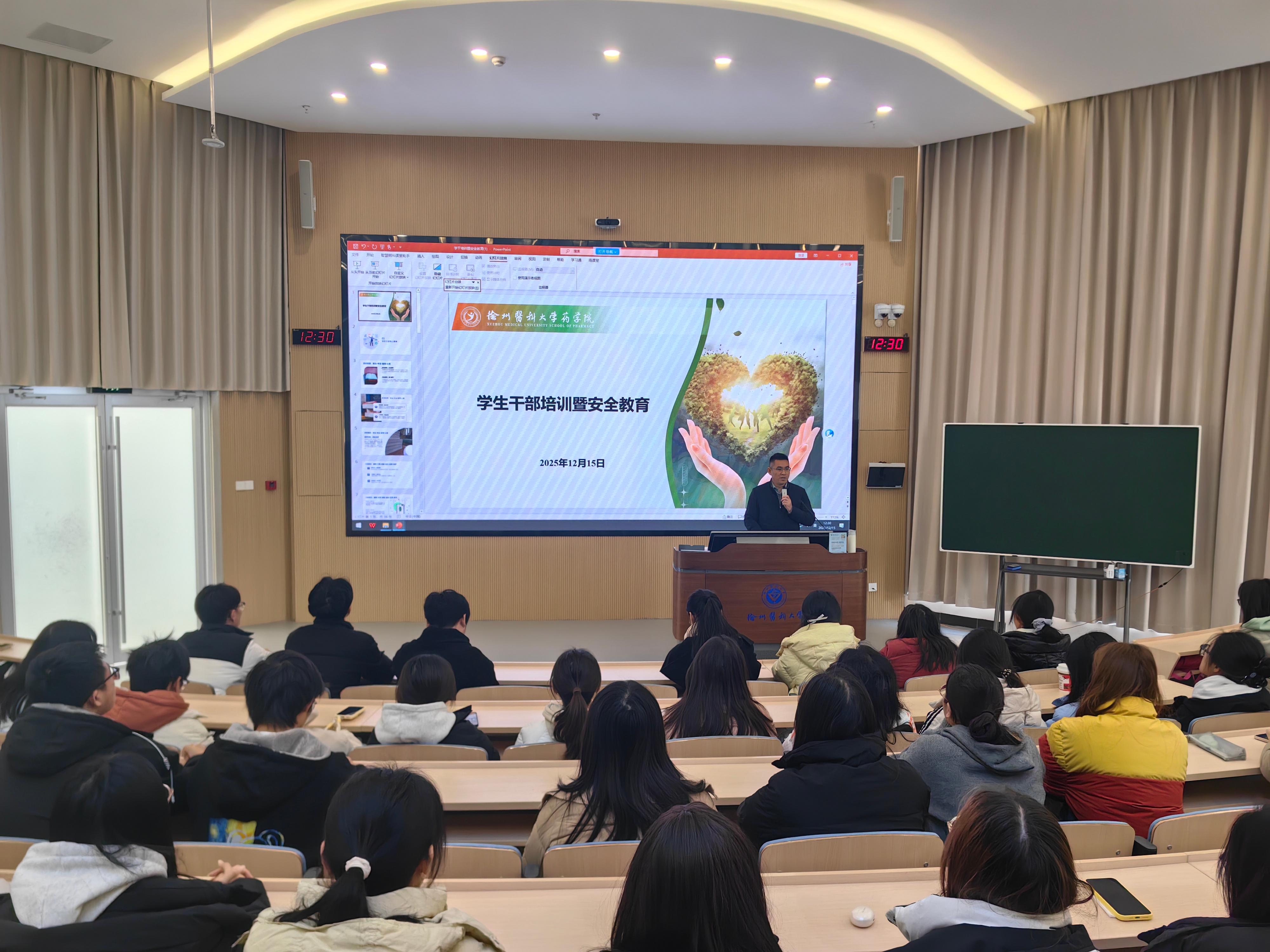 为切实加强学生骨干队伍建设,全面提升学生干部的综合素养与安全防范意识,12月15日,药学院开展学生干部培训暨安全教育课。本次培训由药学院党委副书记黄飞授课。